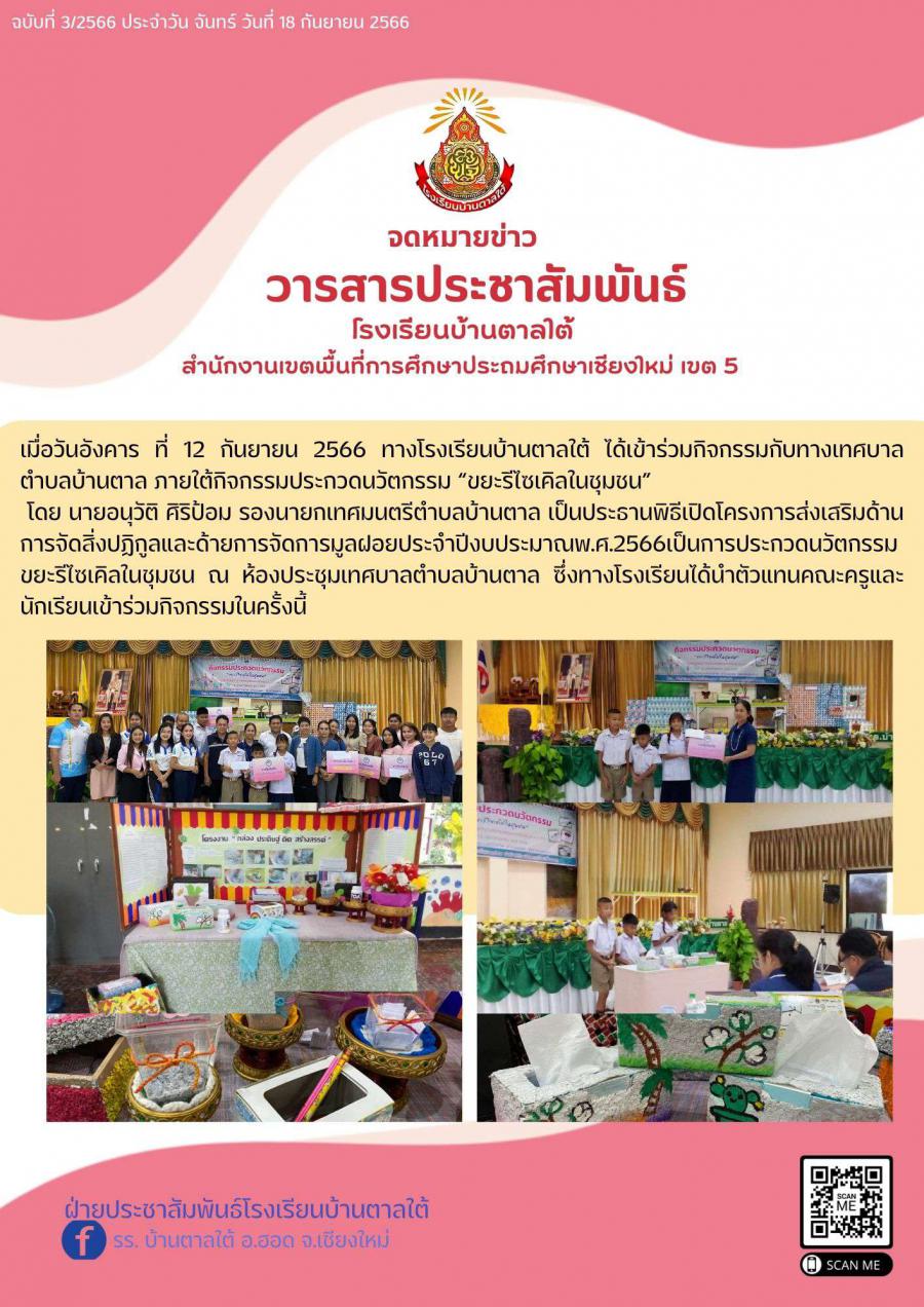 โรงเรียนบ้านตาลใต้ได้เข้าร่วมกิจกรรมกับทางเทศบาลตำบลบ้านตาล ภายใต้กิจกรรมประกวดนวัตกรรม